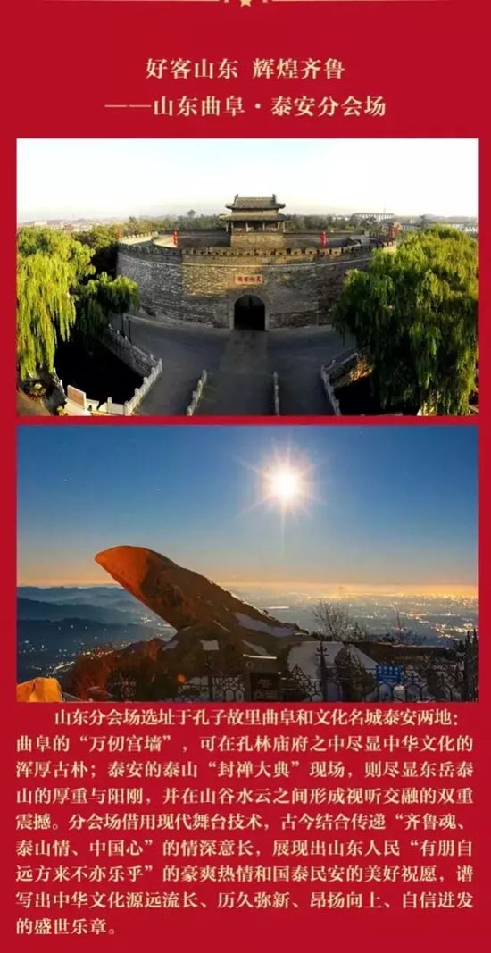 2月3日,央视春晚微博发布微博长图:山东分会场选址于孔子故里曲阜和文化名城泰安。