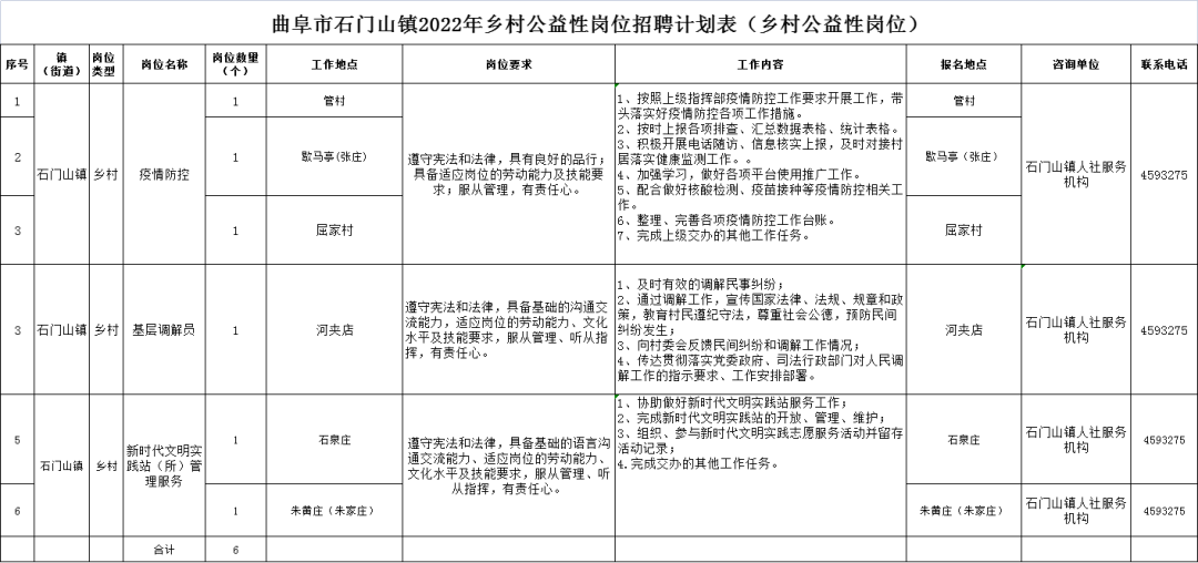 曲阜市石门山镇2022年城乡公益性岗位人员 招聘公告(第6批)