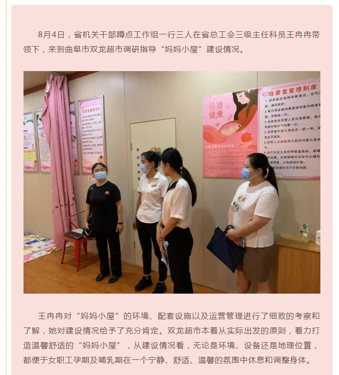 省机关干部蹲点工作组到双龙超市调研指导“妈妈小屋”建设工作