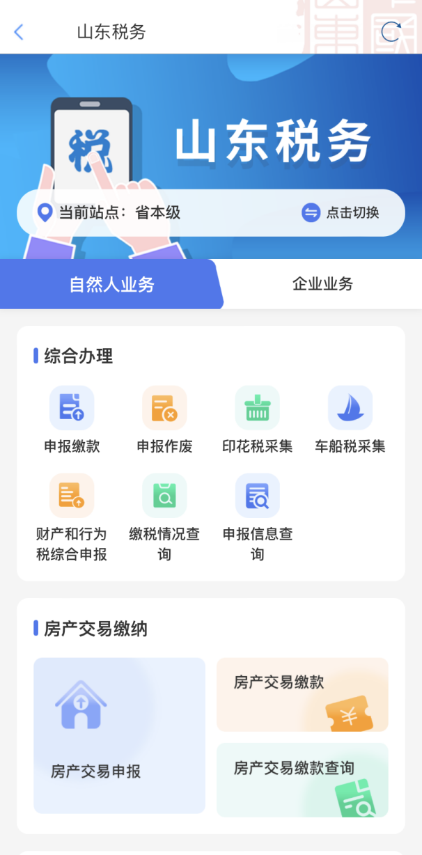 围绕个人与企业的办税、查税需求,“山东税务”服务旗舰店推出自然人业务与企业业务两大服务专栏,专栏涵盖车购税缴纳、房产交易申报、发票使用、证明开具、税收申报及缴纳等常用服务,助力办税更高效、查税更便捷。