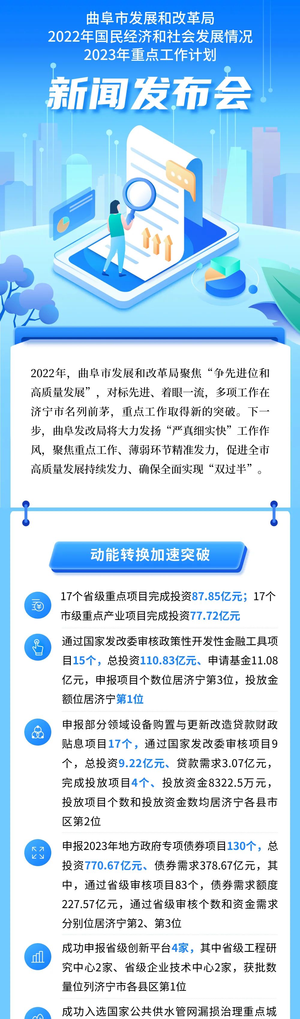 发布会上,市发展和改革局相关负责同志就我市2022年国民经济和社会发展情况及强化经济运行、攻坚重大项目、加大对上争取、聚力攻坚重点工作等四个方面对市发改局2023年工作计划进行了详细介绍,对媒体和社会各界关注的问题作了回答。