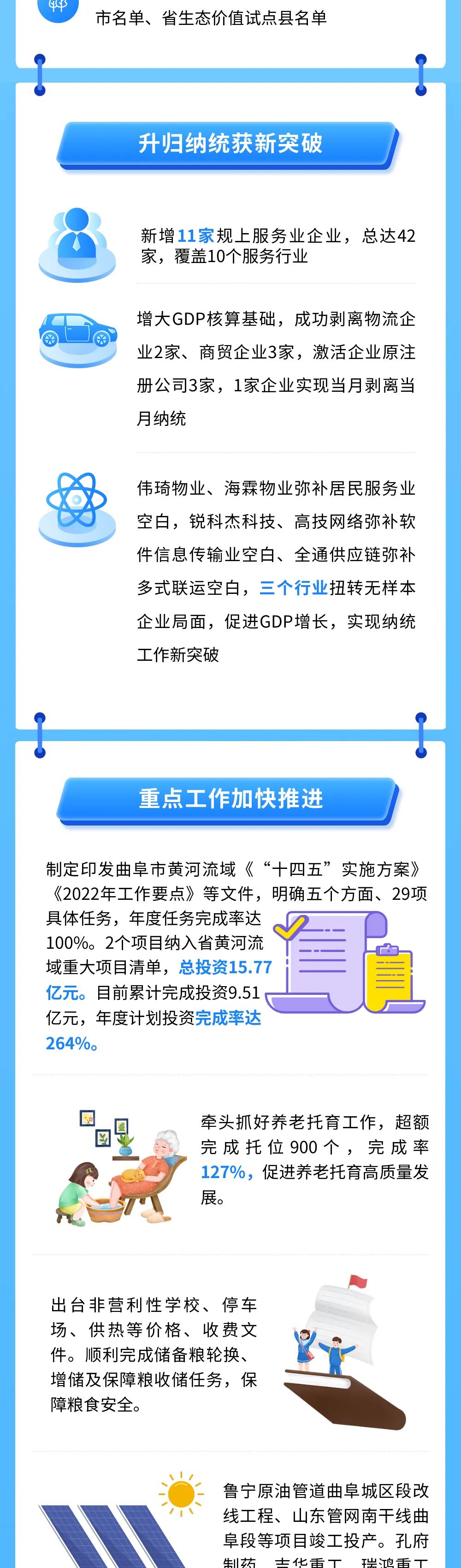 2022年以来,我市高效统筹疫情防控和经济社会发展,攻坚克难、砥砺前行,全市经济保持了平稳高质量发展。实现地区生产总值427.25亿元,同比增长4.6%;完成一般公共预算收入22.93亿元,其中税收收入15.84亿元;居民人均可支配收入达31936元,增长5.8%;固定资产投资增速16.3%,居济宁市第1位;商品房销售面积78.77万平方米,增长8.1%,居济宁市第3位;规上工业增加值增速6.3%;新增“四上”企业138家;实际利用外资5985万美元。今年以来,共发行地方政府专项债券6.63亿元。荣获国家乡村振兴示范县、省高质量发展进步县、首批文旅康养强县等称号。