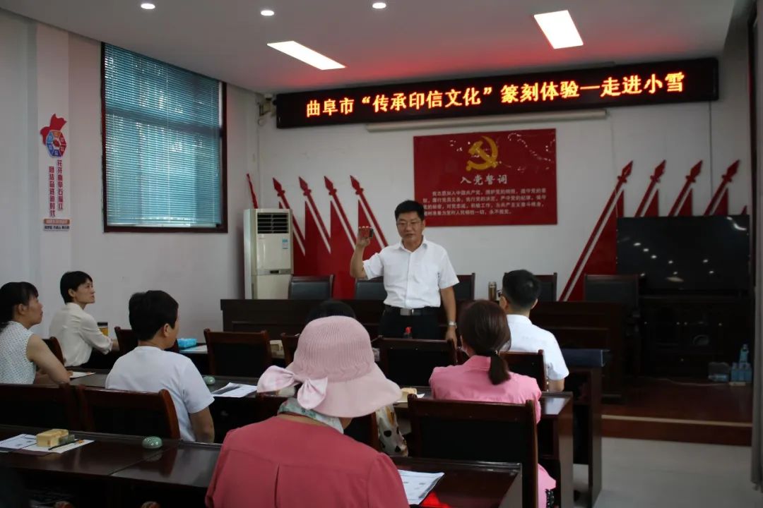 6月20日,曲阜市社会信用中心在小雪街道武家村开展了曲阜市“传承印信文化”篆刻体验活动,旨在把传统文化中的“抱柱之信”和社会主义核心价值观中“诚信”相融合。此次活动邀请市文联副主席张国旗进行授课。