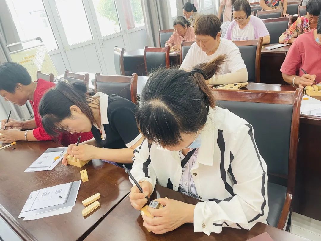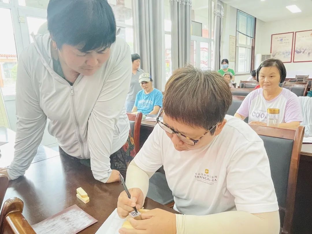 听完张主席的讲解,村民们都对篆刻兴致盎然,迫不及待地加入到篆刻环节当中。