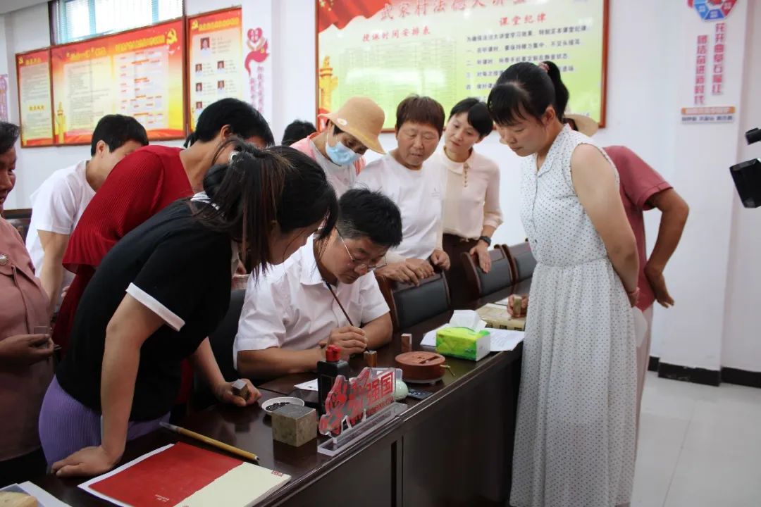 初次篆刻的村民在铃盖印蜕时败下阵来,经过张主席“蘸印泥不能使劲过大,否则印泥侵入字口较多,印蜕失真”的提醒,加之在场志愿者的帮助,大家昂扬斗志,愈战愈勇,一番努力过后都拥有了满意的印章。