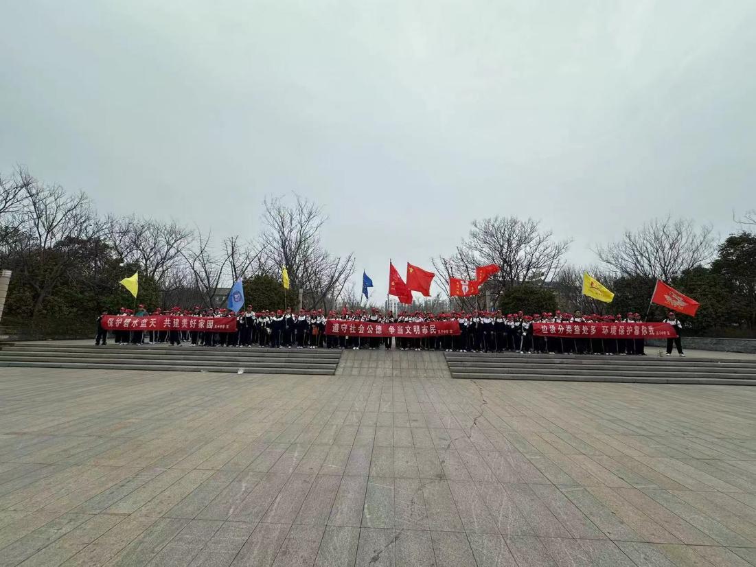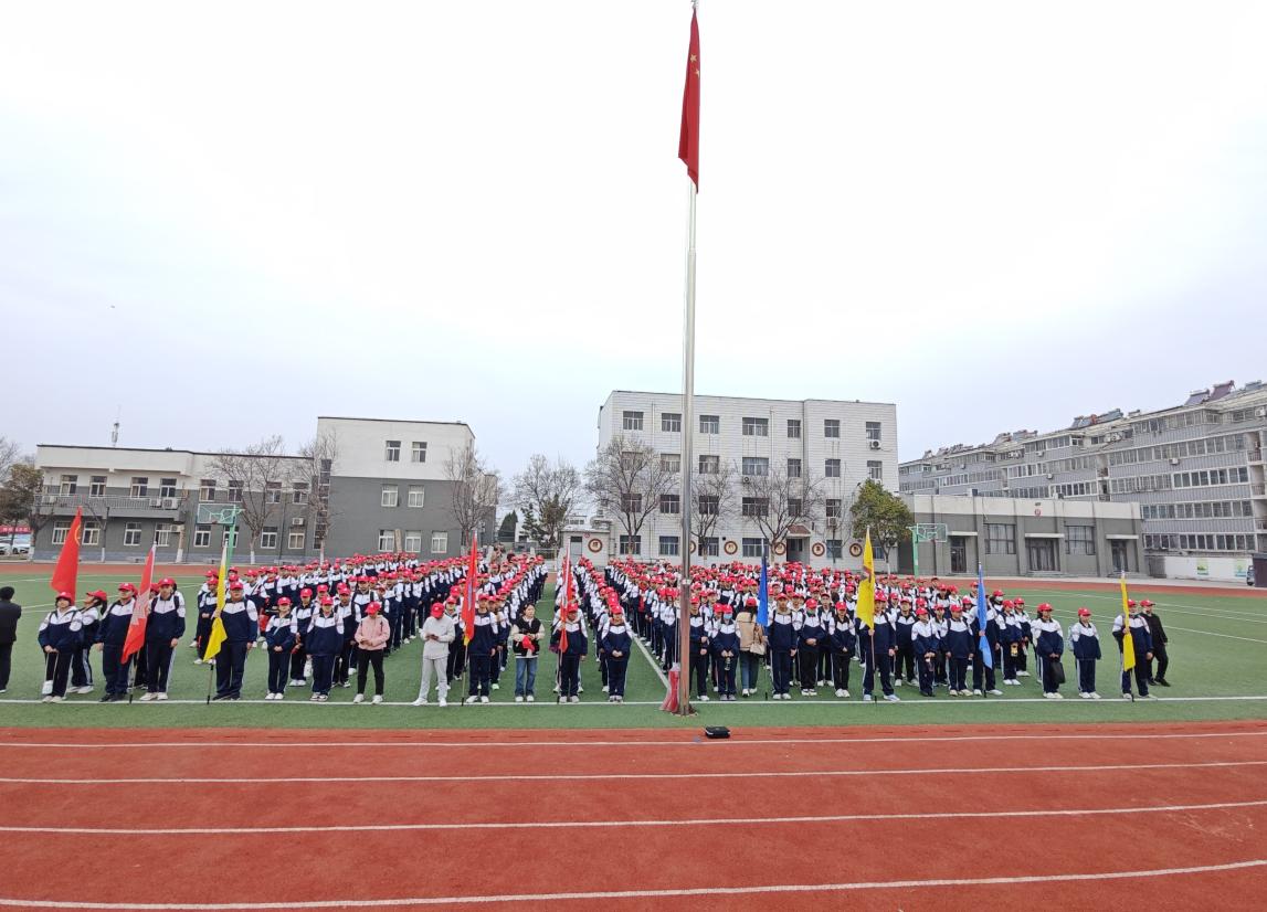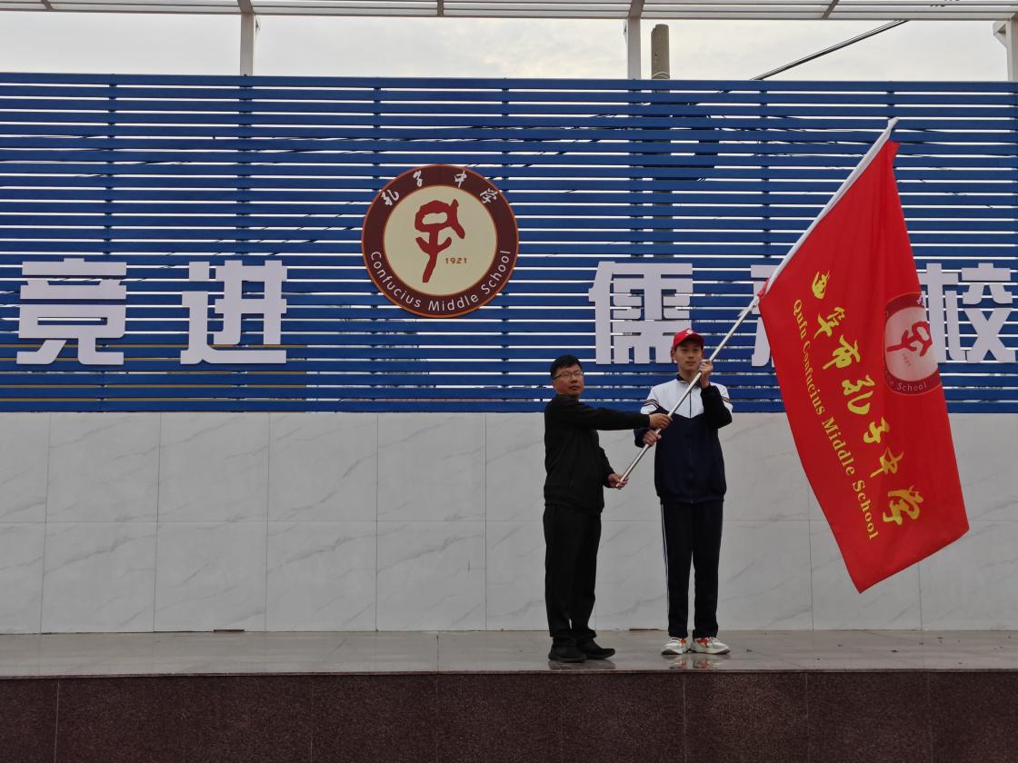 上午7点10分,八年级各班在操场集合整队,德育处主任胡翼飞向同学们强调了本次活动的意义及注意事项。校长张景利发表动员讲话,并向八年级学生代表授旗,本次远足研学活动正式拉开帷幕。