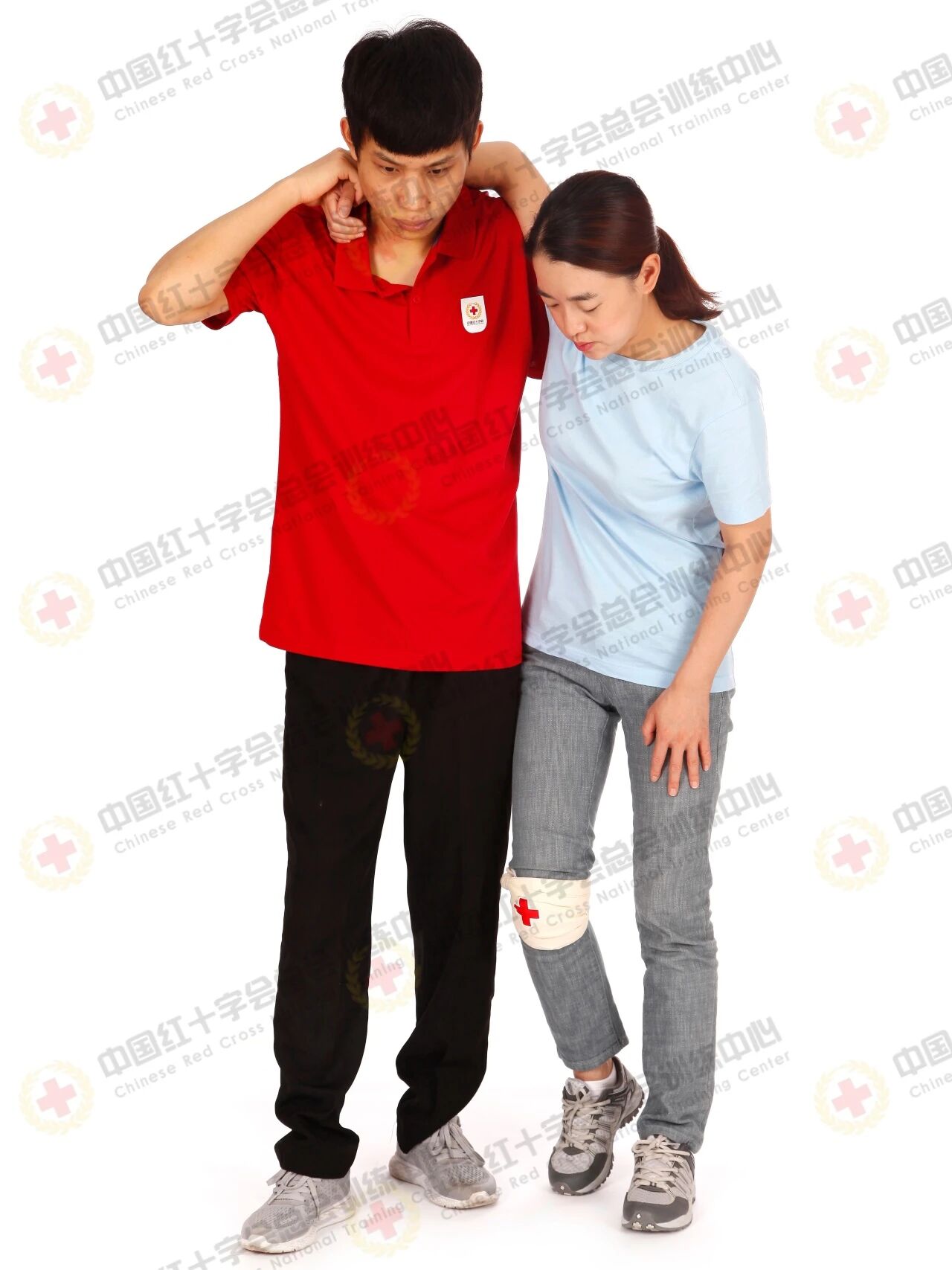 适用于搬运单侧下肢有轻伤但没有骨折,双侧或单侧上肢没有受伤,在救护员帮助下能行走的伤员。