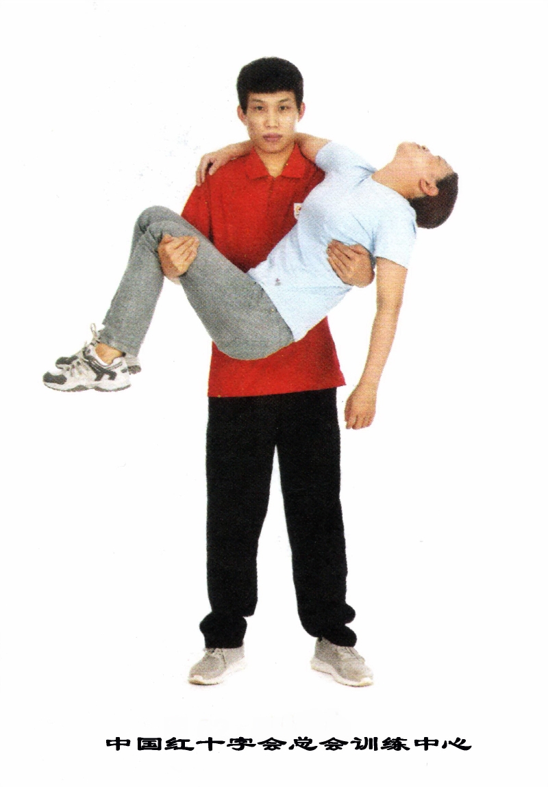 适用于搬运意识清醒、老弱或年幼、体型较小、体重较轻,两侧上肢没有受伤或仅有轻伤、无骨折的伤员。