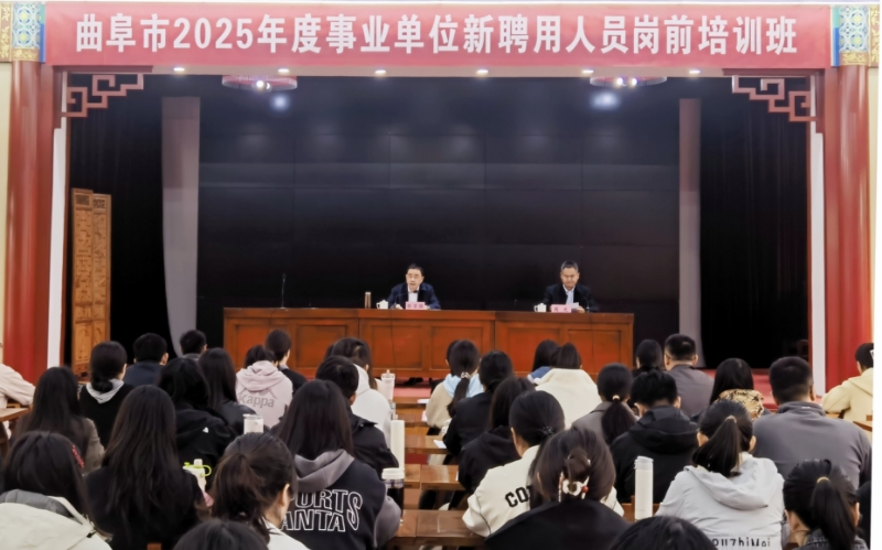 充电蓄能强本领,学以致用促提升。10月13日至17日,曲阜市2025年度事业单位新聘用人员岗前培训班在我校举办。市委常委、组织部部长张卫国出席开班式并作动员讲话,我校党委书记、常务副校长周元主持,全市各事业单位62名新聘用人员参加培训。