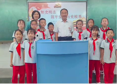 学校邀请的“五老”代表许福鹏爷爷,结合自身经历,为孩子们讲述新中国成立以来的发展变迁。许爷爷嘱咐同学们:“现在的幸福生活来之不易,你们要懂得珍惜,更要接过接力棒,把祖国建设得更强大!”“五老”志愿者用朴实的语言、真挚的情感,将初心使命的种子播撒在孩子们心中,引导他们树立正确的价值观,传承艰苦奋斗的优良传统。