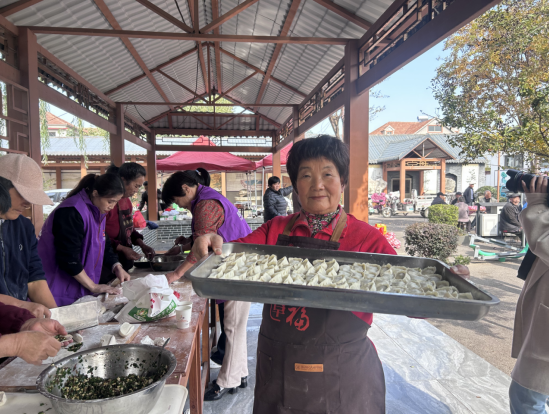 陵南村文化广场上,庄户剧团的经典唱腔唤醒文化记忆,戏韵与喝彩交织成乡村振兴注脚;戏台旁,志愿者烹制的家常菜香气扑鼻,添饭唠家常的举动让“尊老”化作民生温度。“戏里有回忆,饭里有暖意!”79岁孔祥兰老人的感慨,道出文化赋能民生的成效。东方新村“和谐宴”温情涌动,老人们围坐闲谈,晚辈添饭夹菜,82岁的刘庆芳笑着说:“这宴聚的是人心,孝善风气越来越浓!”