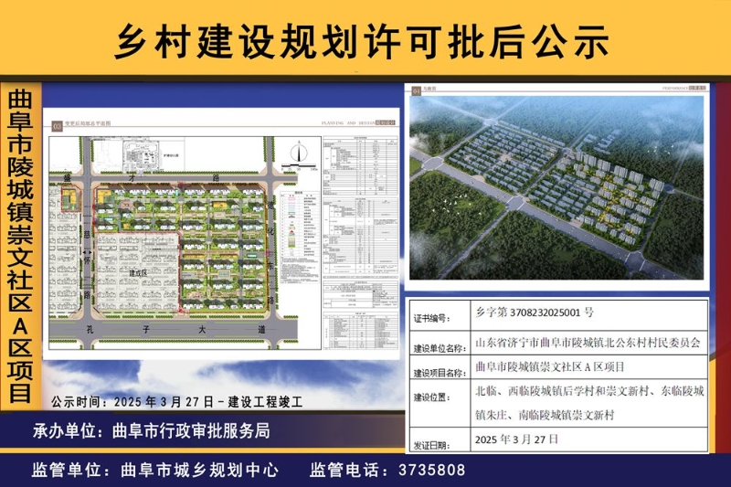 曲阜市陵城镇崇文社区A区项目乡村建设规划许可批后公示