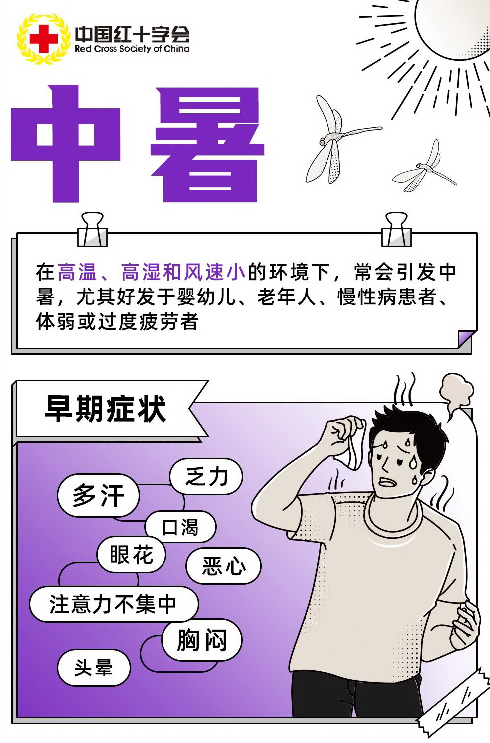 炎炎夏日,当我们身处高温、高湿环境,出现多汗、口渴、头晕、头痛、恶心、注意力不集中等症状时,一定要注意是否发生了中暑。